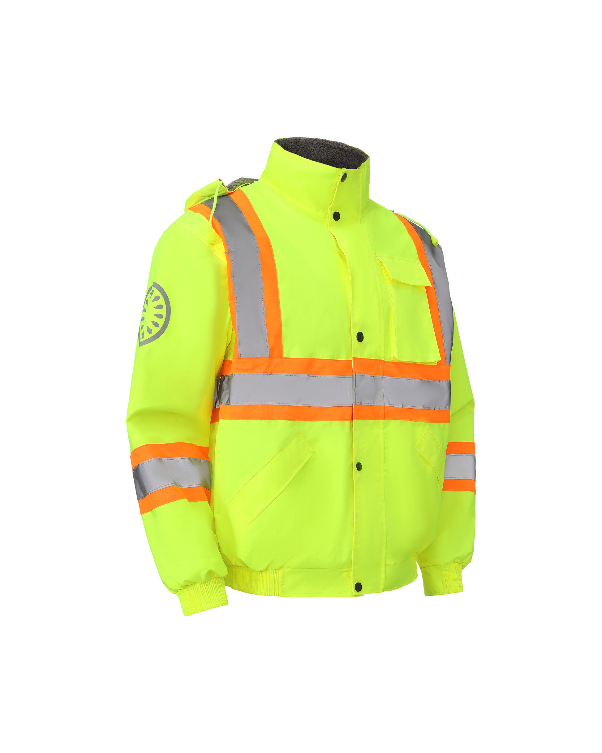 Manténgase seguro y cómodo en el trabajo con esta chaqueta de seguridad con capucha y forro de primera calidad. Diseñada para máxima visibilidad y protección, esta chaqueta es ideal para sitios de construcción, trabajos en la carretera o cualquier entorno que requiera alta visibilidad y resistencia a la intemperie.